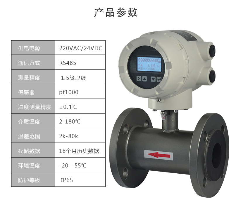 电磁热量表主要是对热交换系统中载能介质(液体水)的供水温度、回水温度及瞬时流量进行实时测量,并按照热力学能量计算公式,对系统消耗的冷量或热量值进行计算并保存的装置。其中电磁式流量传感器是通过法拉第电磁感应定律,将瞬时流量信号线性的变化为感应电动势这一电信号,从而得到瞬时流量信号。计算器将流量信号与温度传感器采集的温度信号进行积算,得出我们需要的能量值。